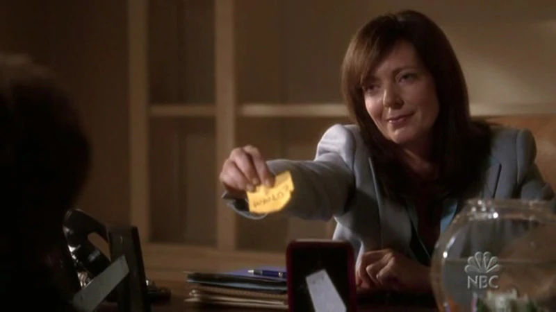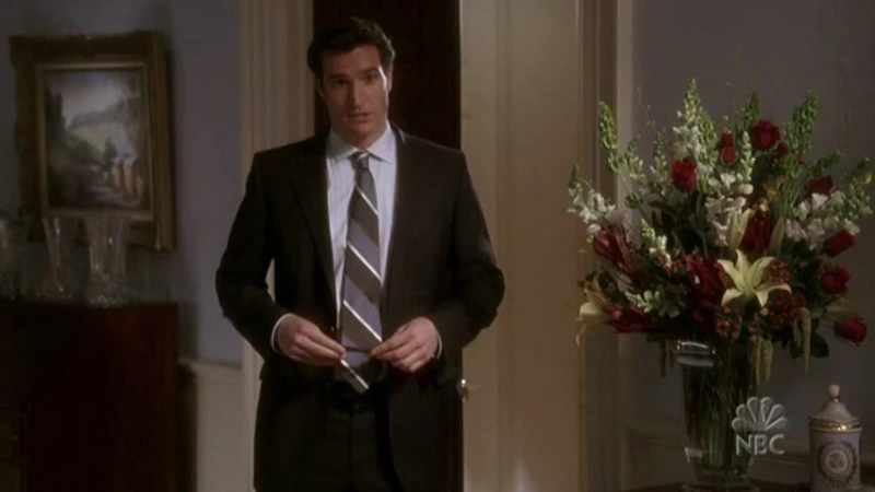 Later that morning, C.J. meets with Mallory, who has a gift for President Bartlet. C.J. is surprised that Mallory is giving the gift to her for delivery, offering to let Mallory deliver it herself. Mallory is unwilling to do so, stating that the gift is “sentimental” and indicating that the loss of her father after these last few weeks is still fresh on her mind.